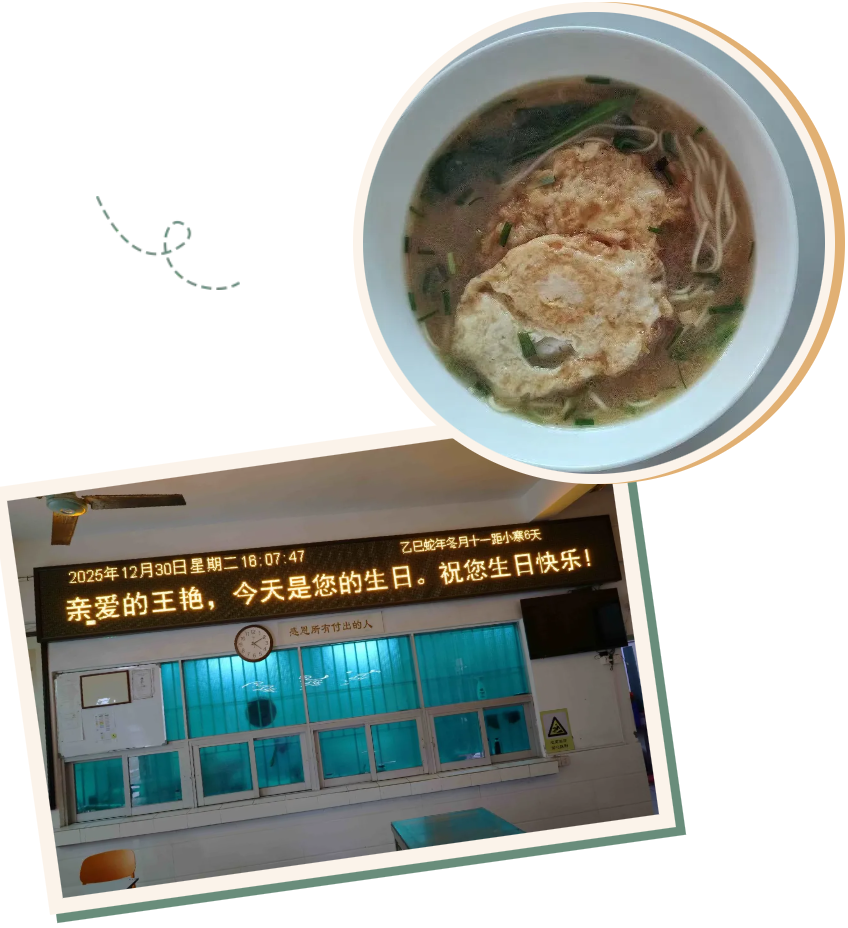 ? ? ?生日專屬祝福語全天在線霸屏,當長壽面遇上糖心蛋,香蔥和時令青菜共舞時,承載著滿滿祝福的特供生日套餐就閃亮登場啦,這是屬于我們卡的人獨有的儀式感。