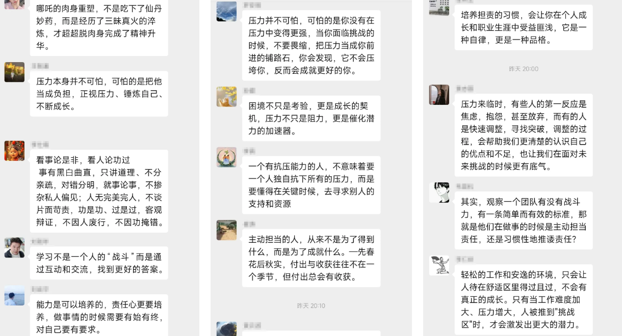 ? ? 本次讀書會(huì)在熱烈的討論中落幕。大家達(dá)成共識(shí):擔(dān)責(zé)不是能力問題,而是意愿和習(xí)慣。它藏在每一次主動(dòng)跟進(jìn)、每一句“我來確認(rèn)”、每一個(gè)錯(cuò)誤后的“我負(fù)責(zé)解決”里。